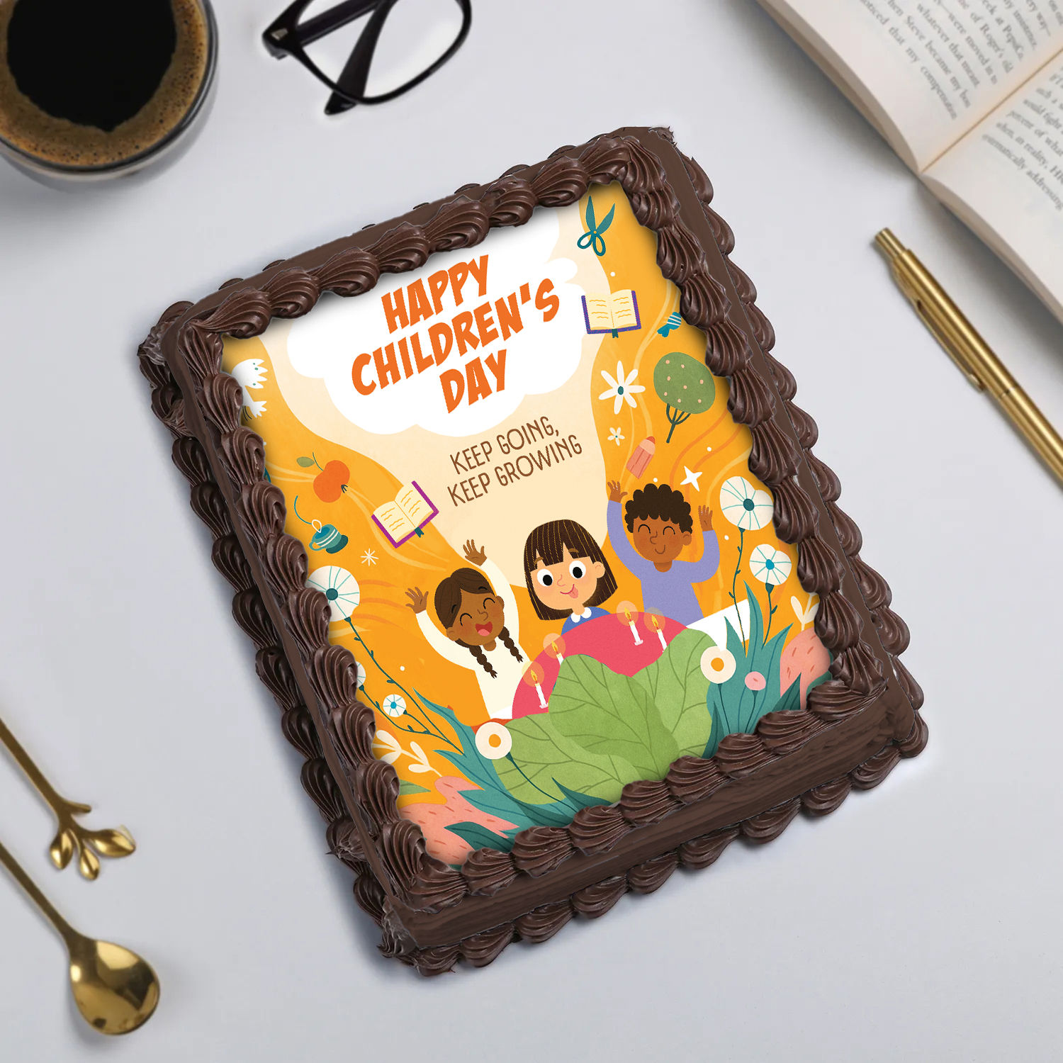 Chocolate Photo Cream Slab Cake