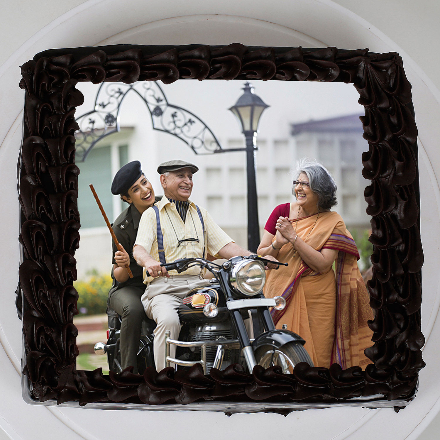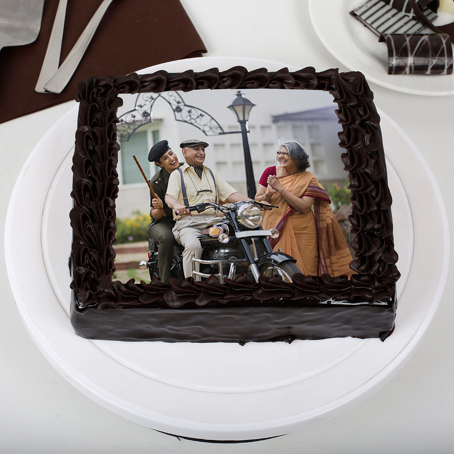 The square photo cake makes a striking presentation on any dessert table, especially for a Father’s Day get-together or Dad’s birthday. The image adds a personal touch. The deep, dark cocoa hues practically scream “indulgence”, making it ideal for someone who loves intensely flavoured desserts, or simply as a centrepiece.