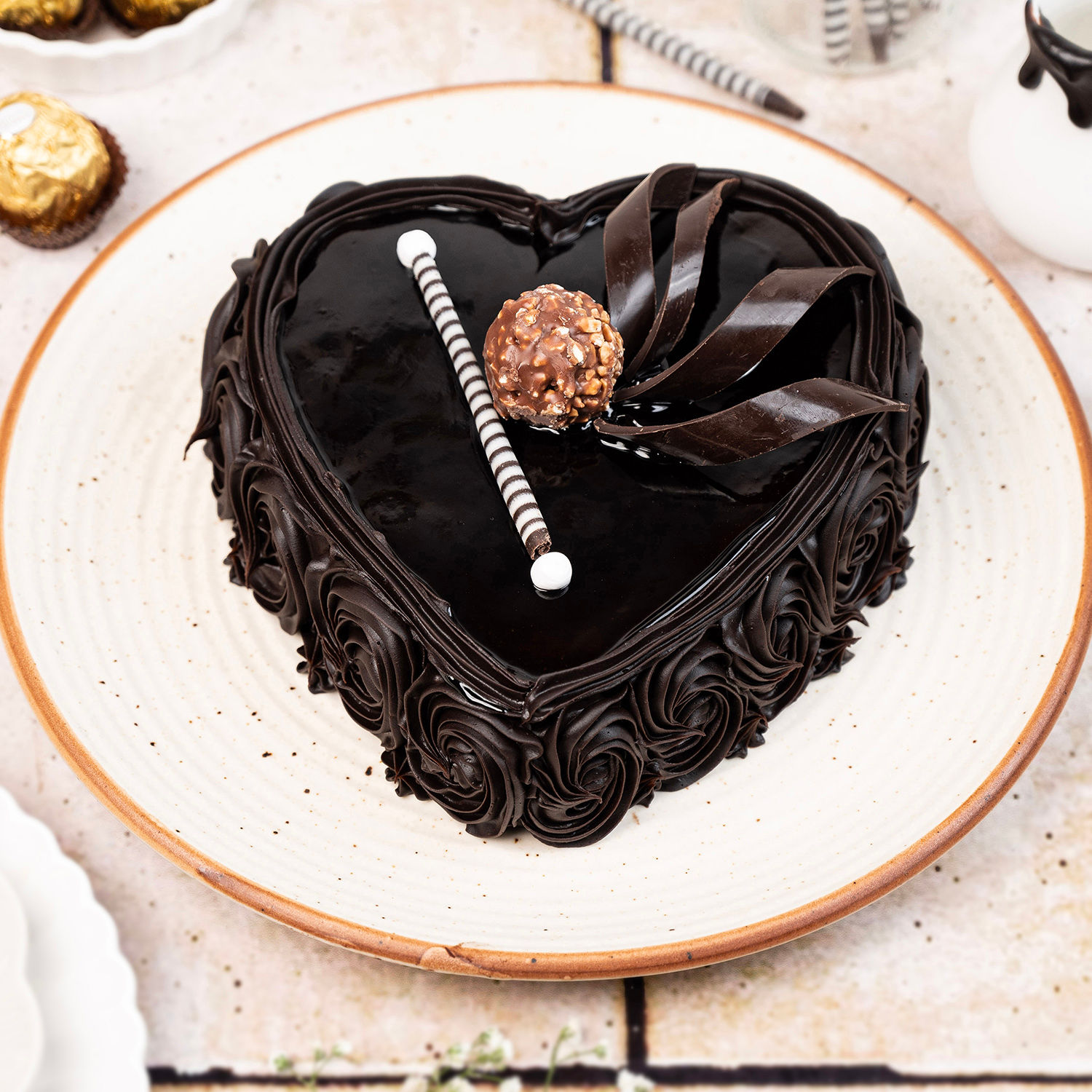 Visually, this heart-shaped truffle is a statement. The deep, dark ganache finish promises a touch of drama on the table. This cake is ideal for intimate gatherings. A couple’s quiet anniversary, a special Valentine’s toast, or even a sophisticated bridal shower where you need a centerpiece. The rich flavour will be especially loved by adults who appreciate intense chocolate.