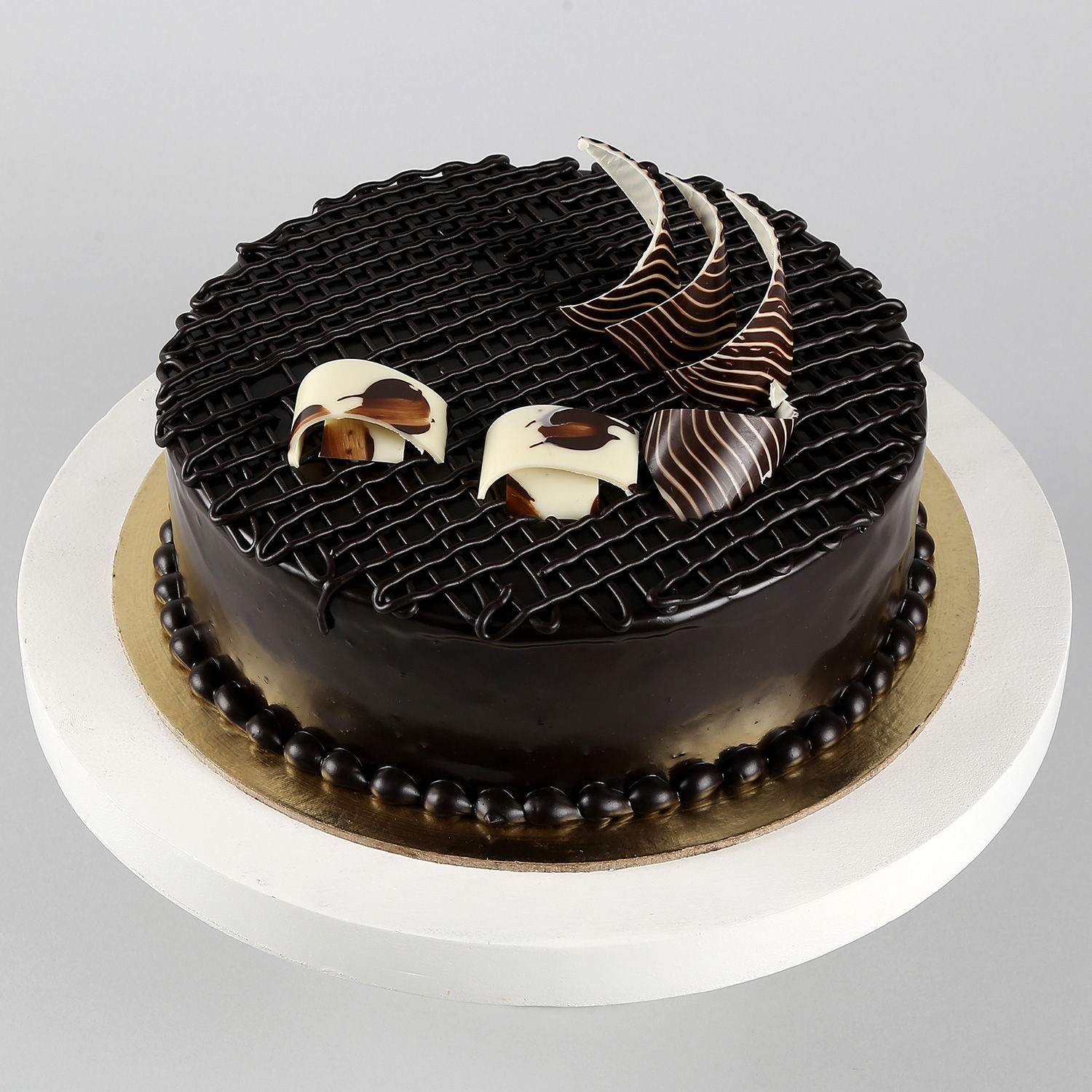 Picture this round masterpiece on your dining table. The artful swirls of cream on top add to the visual appeal. This chocolate cake would be perfect for a low-key anniversary or a casual weeknight family dessert. The kind of cake that satisfies cravings without needing a special reason.